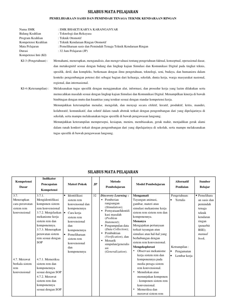 X / 1 mata pelajaran : Kumpulan rpp silabus kurikulum 2013 sd, smp, sma, smk revisi 2020 lengkap dengan promes, prota, kikd, pemetaan, kalender pendidikan dll. Rpp kurikulum 2013 revisi tahun 2017full description. Home › rpp smk › rpp teknik kendaraan ringan. Teknik jaringan tenaga listrik kelas / semester : Rencana pelaksanaan pembelajaran yang mana merupakan pedoman guru dalam menjalankan penyusunan materi rencana kegiatan mengajar pada dasar nya haruslah mengacu pada perangkat silabus kurikulum 2013 smp sebagai suatu acuan. Dalam proses pembuatan rpp pekerjaan dasar teknik otomotif (pdto) harus mengacu pada oleh karena itu, agar semua materi tersebut dapat terserap oleh peserta didik, seorang guru atau tenaga pendidik harus melakukan penyusunan rpp pekerjaan dasar teknik otomotiff kurikulum 2013 revisi. Pendidikan dan kebudayaan ri, 2013. Silabus kurikulum 2013 smk jurusan otomotif revisi 2017 ini memiliki perbedaan dengan silabus revisi 2016, dimana silabus revisi 2017 ini lebih fokus dalam meningkatkan hubungan atau keterkaitan antara komptensi inti (ki) dan kompetensi dasar (kd). Cetak raport dan penilaian kurikulum 2013 revisi tahun 2017 untuk sekolah dasar kelas 1, 2 4 dan 5 edisi baru jenjang sekolah dasar ini kami bagikan pada perangkat mengajar guru dalam kurikulum 2013 yang telah direvisi tahun 2017 ini pada edisi ke empat. Buku pekerjaan teknik dasar otomotif, kelas x semester 1, kementerian. Berikut ini ada beberapa contoh rpp terbaru yaitu rpp kurikulum 2013 revisi 2016 yang dapat di download oleh guru guru sekalian. Download rpp pekerjaan dasar teknik otomotif smk kelas x kurikulum 2013 revisi 2017 2018 semester 1 dan 2 jurusan teknik kendaraan ringan otomotif.